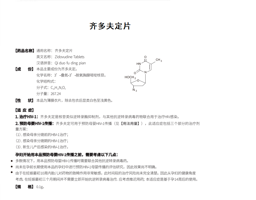 齐多夫定片(100mg)